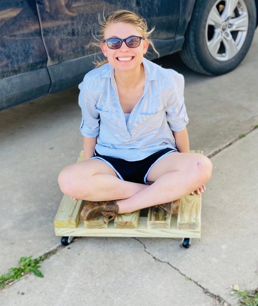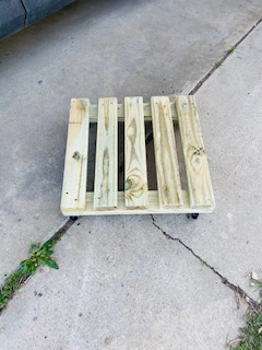 We made our own wooden dolly that would stand up to the heat and rain, as well as not cause issues on “The Tower” (what I’ve been calling the Lettuce Grow lately).